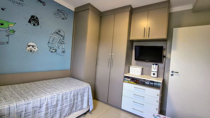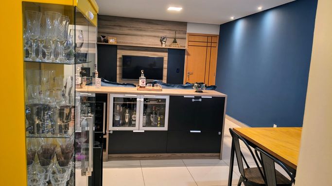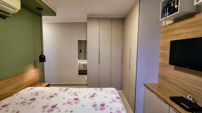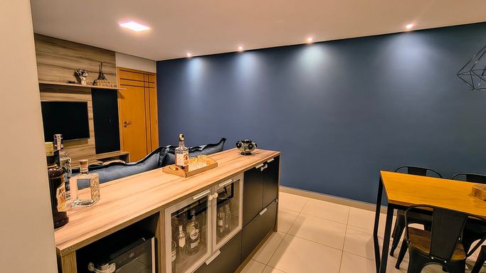 Apartamento com 74 m², muito bem distribuído, localizado no 6º andar, com acabamento moderno e móveis planejados em todos os ambientes.