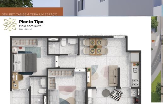 Os apartamentos foram cuidadosamente planejados para oferecer ambientes integrados, funcionais e bem iluminados, com plantas inteligentes que otimizam cada metro quadrado. O projeto valoriza ventilação natural, conforto térmico e vista privilegiada para áreas verdes e o entorno urbano.