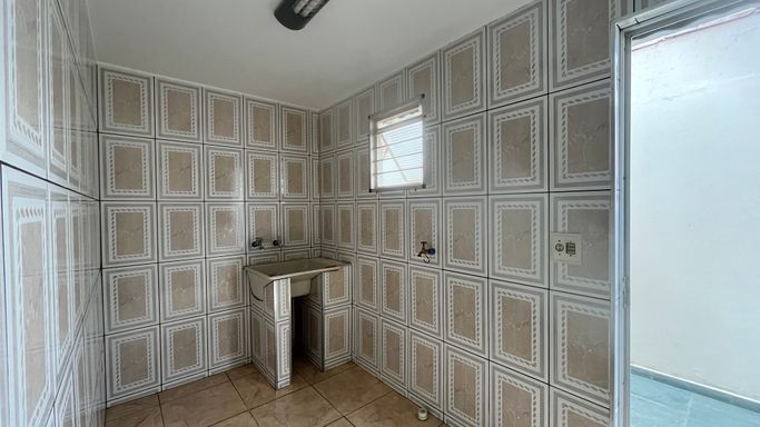 Corredor lateral espaçoso com piso cerâmico ante escorregadio