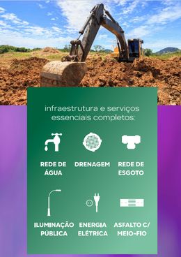 ✔ Infraestrutura completa: rede de água, drenagem, rede de esgoto, iluminação pública, energia elétrica e asfalto com meio-fio – tudo pronto para você construir. (conforme página de infraestrutura do material oficial